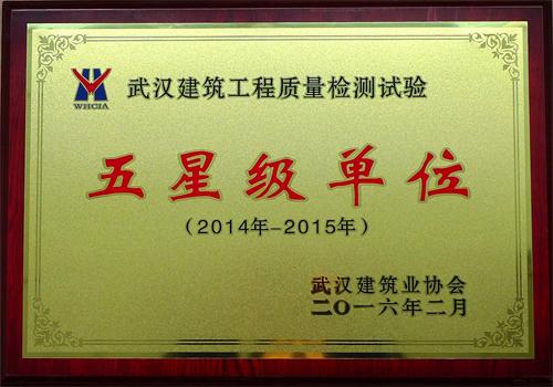 2013年我公司被武漢建筑業(yè)協(xié)會(huì)選為檢測(cè)試驗(yàn)工作委員會(huì)副主任委員單位,2012-2017年連續(xù)五年被評(píng)為先進(jìn)單位,2013、2015、2017年連續(xù)三屆被評(píng)為武漢市建設(shè)工程質(zhì)量檢測(cè)機(jī)構(gòu)五星級(jí)檢測(cè)單位。2017-20…